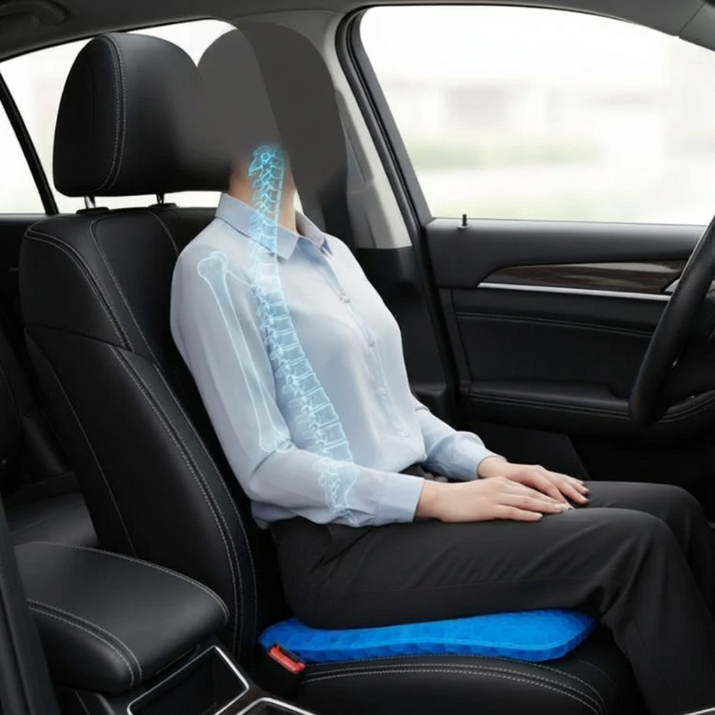 Os bancos dos carros e camiões são projetados para garantir durabilidade, não para se adaptarem ao seu corpo. A sua forma em concha força os quadris a baixarem e as coxas a apoiarem-se no banco, bloqueando a circulação e tornando as pernas inquietas. Com o tempo, essa postura incorreta irrita os nervos e causa dor mesmo muito tempo depois de desligar o motor. O CoolGel+ foi projetado para viagens longas. A superfície em gel reativo mantém as ancas niveladas e reduz a pressão nas coxas, enquanto a tecnologia de arrefecimento impede a acumulação de calor que limita o fluxo sanguíneo. O resultado? Alinhamento natural, circulação saudável e horas de condução sem dor ou rigidez.